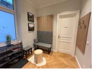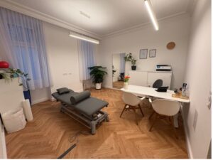 Die Praxis befindet sich in einem frisch sanierten Altbau im Hochparterre und ist über ein paar Stufen zu erreichen. Sie besteht aus einem Wartebereich, 2 Therapieräumen, einem kleinen Trainingsbereich und einer Küche. Erreichbar ist sie direkt mit der U4 (Station Pilgramgasse) oder den Buslinien 12A/13A/14A
