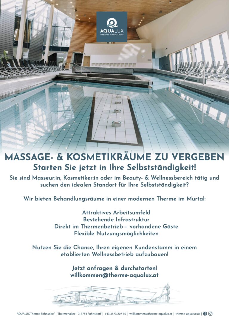 Massage- & Kosmetikräume in der Therme Aqualux zu vergeben
