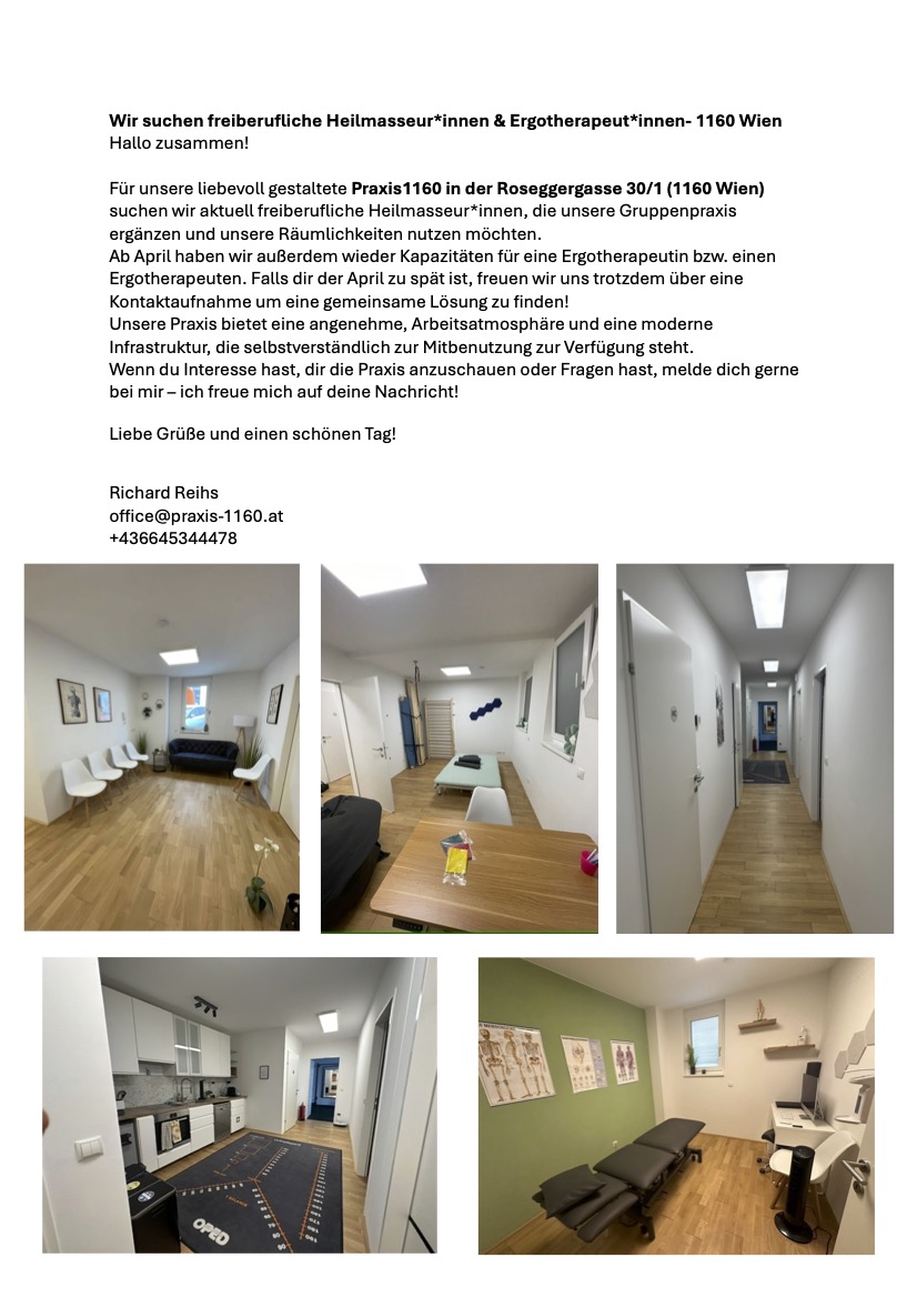 Praxis 1160 in Wien sucht freiberufliche Heilmasseur*innen & Ergotherapeut*innen