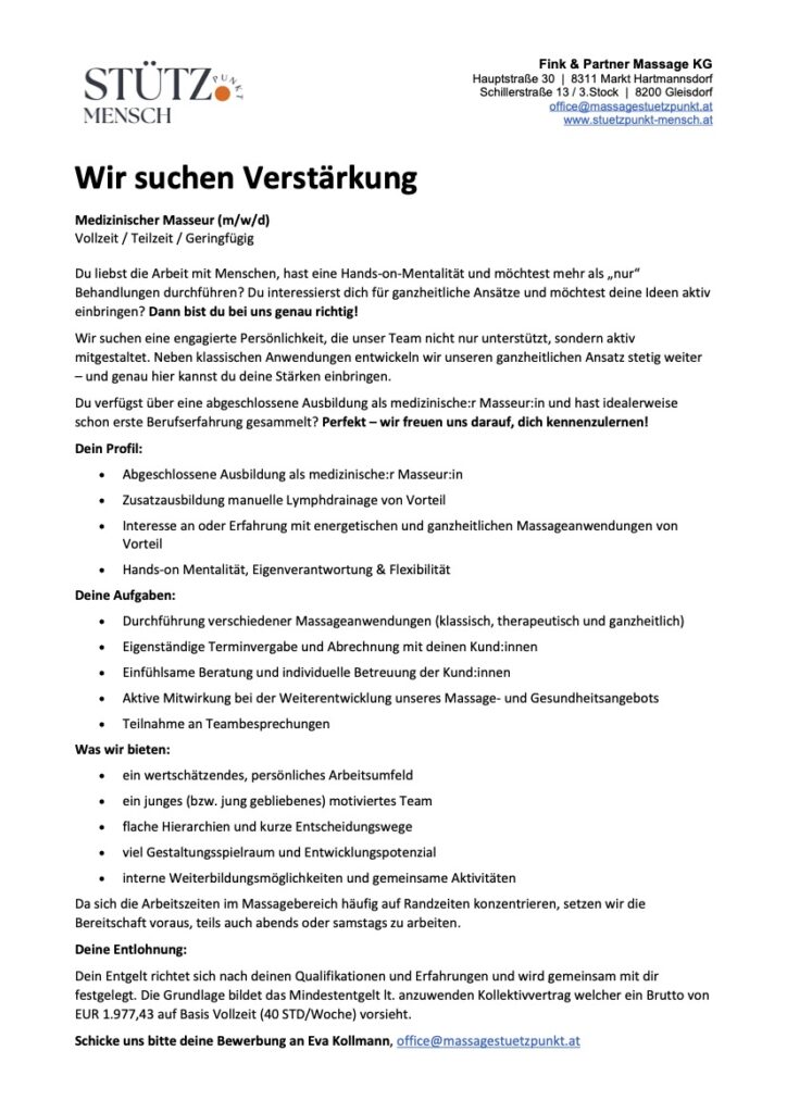 Stützpunkt Mensch sucht Medizinischen Masseur (m/w/d)